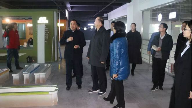 在華興二期整個參觀過程中,邢臺市委書記王會勇首先對公司二期整體設計風格和建筑用材表示肯定;在參觀通道中,王會勇詳細了解了公司目前的企業文化,并對正在施工中的展廳所富含的企業文化提出了自己的意見。