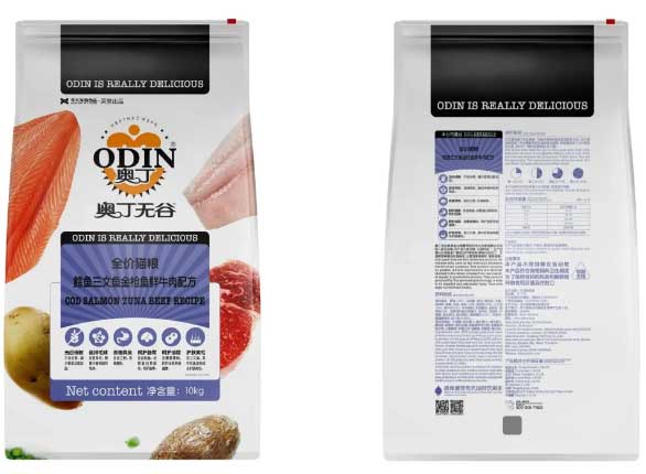奧丁無谷系列本周新上單品—鱈魚三文魚金槍魚鮮牛肉配方全價貓糧,本產(chǎn)品共分為1.5kg/10kg兩種規(guī)格,粗蛋白質(zhì)≥38%,富含多種肉類,不含谷物,兼?zhèn)浯倥琶颉⒏纳萍S臭、呵護腸胃、護膚美毛、呵護泌尿等特點。