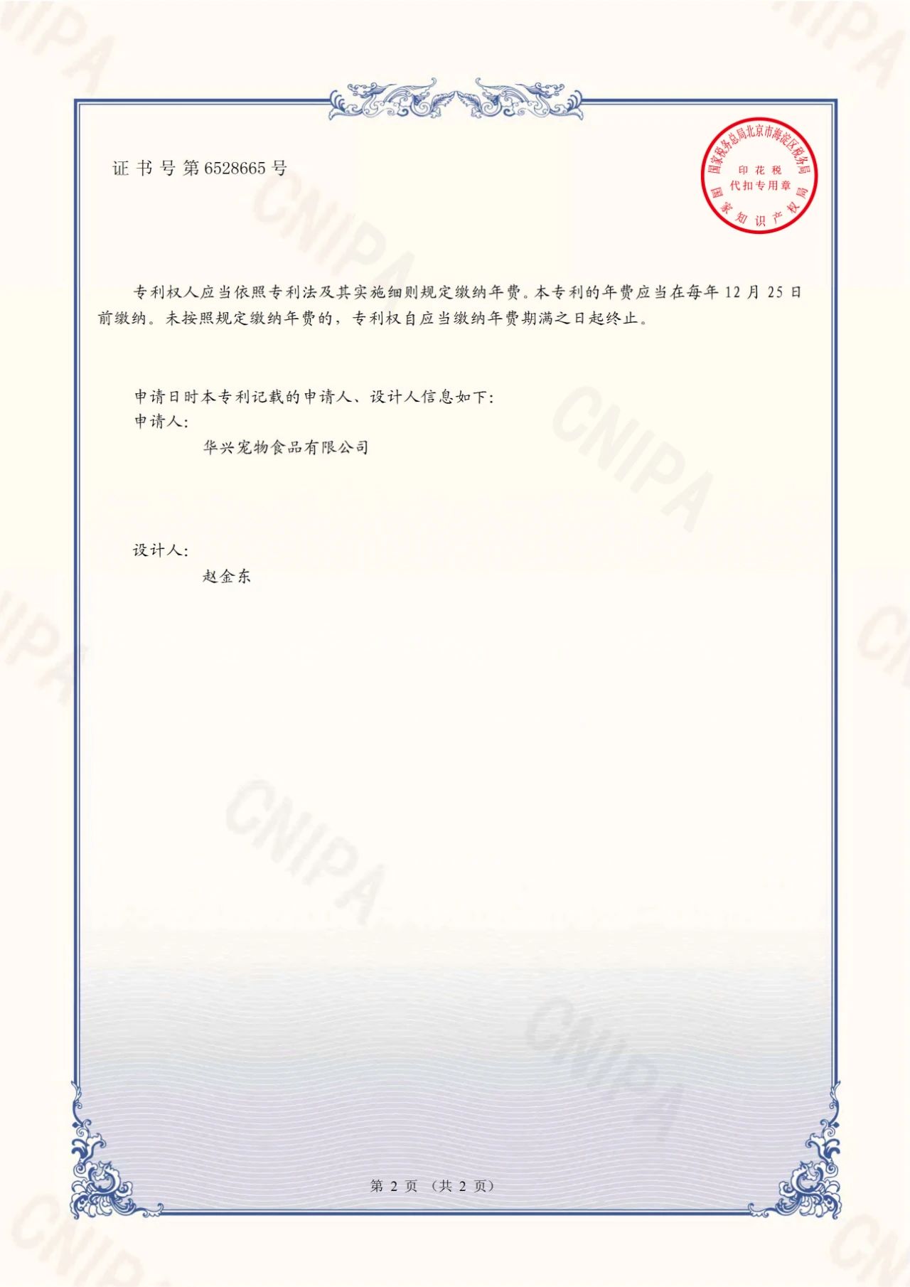 近日,國家知識產權局經過初步審查,力狼狼部落包裝袋外觀設計被授予專利權,頒發外觀設計專利證書,專利號:ZL 2020 3 0802625.6,并在專利登記薄予以登記。