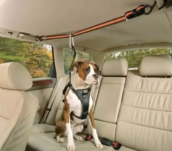 9. 車(chē)載妙招 狗狗總愛(ài)從后座竄到前面咋辦? 看圖!將繩子固定在車(chē)后座的安全扶手上,再用卡扣固定住狗狗,既不影響狗狗在后座活動(dòng),又能防止它竄到前面去。