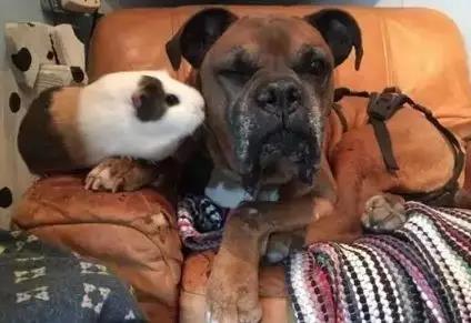 雙腿不便的它,把小豚鼠當作的了最好的伙伴,無時不刻不陪伴著對方。
